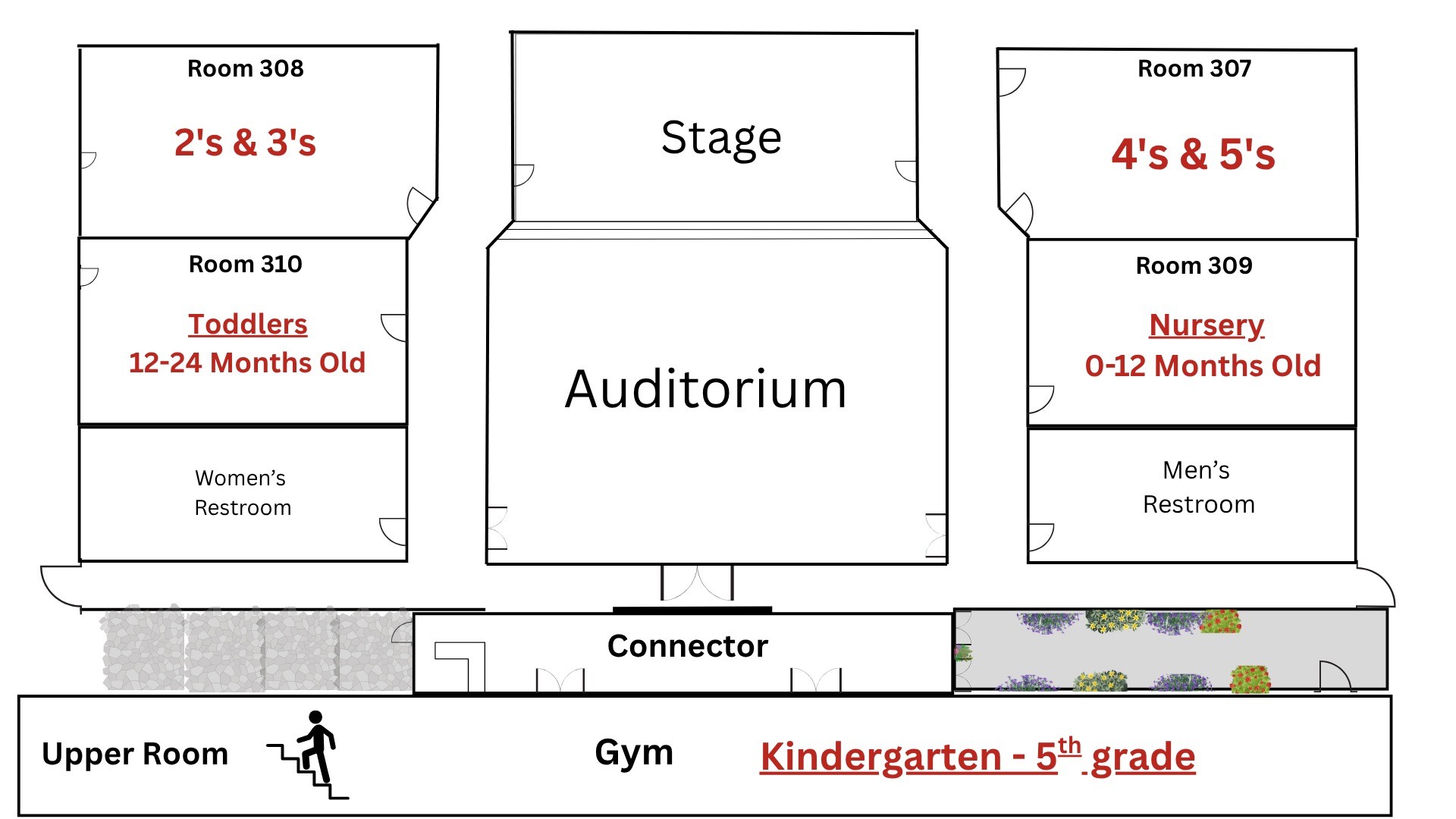 • Main Worship (6th graders – Adults): Auditorium Main Building